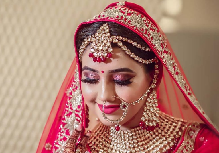 Customized bridal makeup creating an elegant, long-lasting look for your special wedding day.
